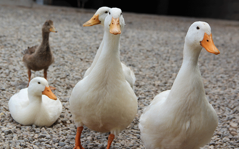 They often swim in ponds and streams, but they are likely to be preoccupied foraging in grassy meadows for worms, slugs, even catching flies. They appreciate open spaces but are happy in gardens from which they cannot fly and where they make much less noise than call ducks. Only females quack and drakes are limited to a hoarse whisper. Compared to big table ducks, they eat less grain and pellet supplements.